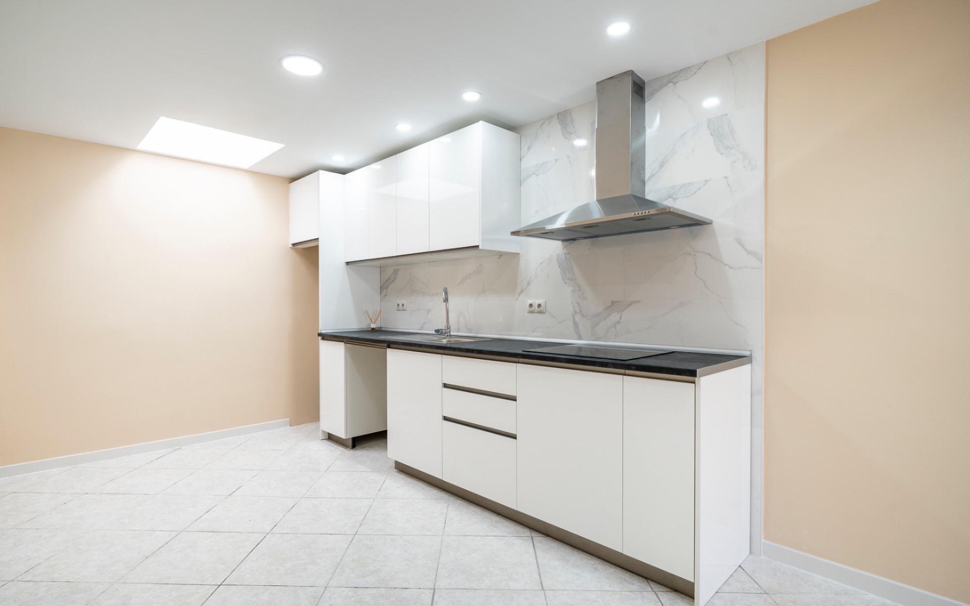 Aufgeteilt in Wohn-/Essbereich mit offener Küche, zwei Schlafzimmer und ein Badezimmer. Im Außenbereich befindet sich eine private, geflieste Terrasse von 25 m² an der Vorderseite mit Markise, zugänglich über eine ruhige Fußgängerstraße.