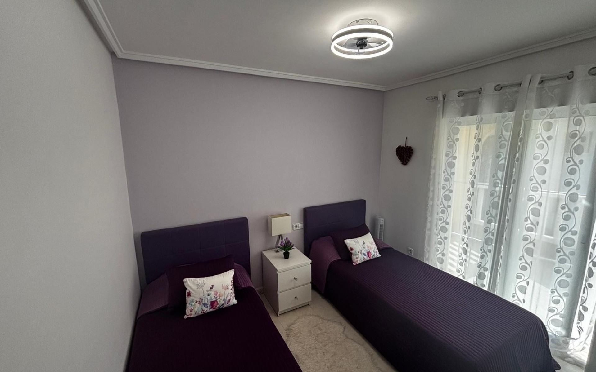 Nous sommes ravis de vous présenter cette superbe maison jumelée de 2/3 chambres de style Lola, construite par Euromarina en 2007, dans le quartier très prisé de Dona Pepa, au sein d'une résidence sécurisée. La propriété a bénéficié de rénovations de très haute qualité par les propriétaires actuels. Elle bénéficie d'un emplacement d'angle, offrant des jardins à l'avant et à l'arrière, ainsi qu'une entrée latérale. Les murs extérieurs ont été surélevés pour plus d'intimité, et une buanderie extérieure a été ajoutée pour accueillir le lave-linge et un espace de rangement.À l'intérieur, les propriétaires actuels ont conservé un salon et une salle à manger. Cet espace peut facilement être transformé en une troisième chambre si vous le souhaitez.Le mobilier, inclus dans la vente, est d'une qualité exceptionnelle. Cette propriété clé en main vous permettra d'en profiter dès votre arrivée.Le petit lotissement d'Alegria bénéficie d'une superbe piscine commune et de magnifiques jardins. À quelques pas, vous trouverez plusieurs supermarchés, bars et restaurants.