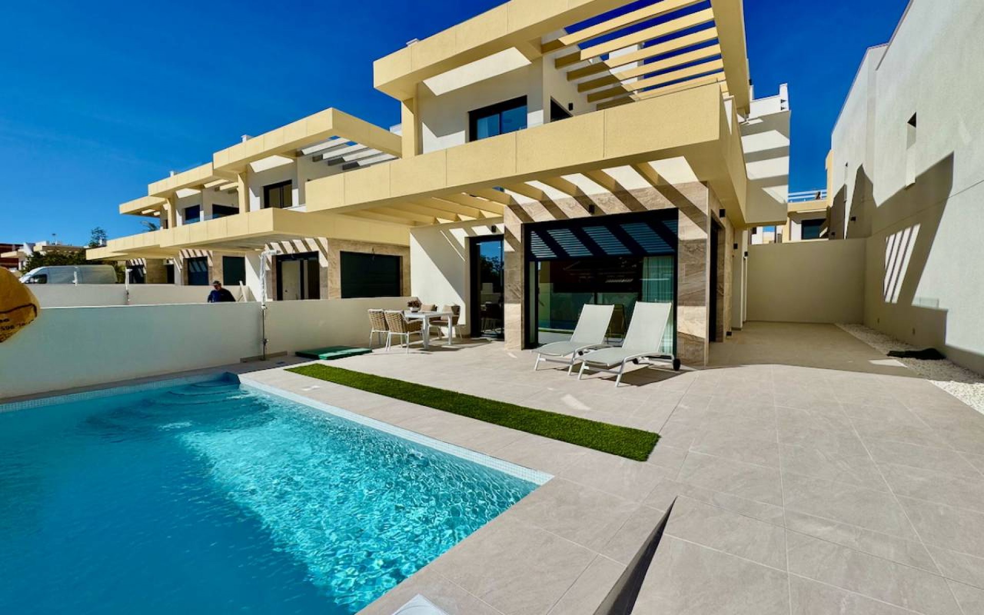 New Build Semi-Detached Villas in Los Montesinos – La Herrada Welcome to this exclusive residential development of 12 modern semi-detached villas in the peaceful and well-known area of La Herrada, Los Montesinos. Designed for comfort and style, these stunning new-build homes offer the perfect blend of contemporary living and Mediterranean charm. Property Features: 3 Bedrooms & 2 BathroomsSpacious Open-Plan Kitchen & Living RoomBuilt-in Wardrobes for Maximum StoragePrivate Garden & Terrace for Outdoor EnjoymentDedicated Parking SpaceOptional Solarium & Private Pool (Available at an Additional Cost) Prime Location & Accessibility: 10 Minutes to the Beaches & Leisure of TorreviejaClose to Several Golf CoursesEasy Access to the A7 Motorway – Alicante Airport in just 20 minutesSupermarkets, Bars & Daily Amenities within the UrbanizationNear International Schools, Hospitals & Cultural Centers The Perfect Mediterranean Lifestyle With 300 days of sunshine per year and an average temperature of 20ºC, this region is ideal for both a holiday homeand permanent residence. Enjoy a peaceful rural setting while staying close to vibrant city life, golf courses, and stunning beaches. Contact us today to learn more or schedule a visit!