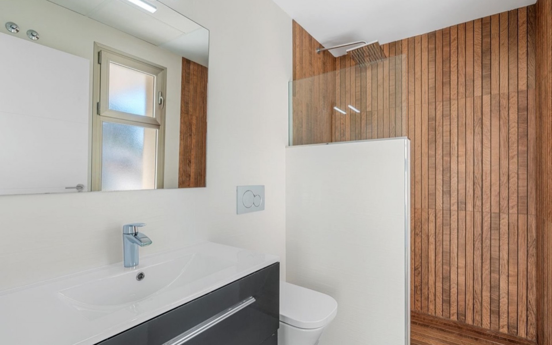 This impressive villa from 2018 is created in an elegant and modern style with plenty of space and functional solutions.With a total of 197 m² spread over three - actually 4 floors, you get a home that combines style, comfort and flexibility - perfect both as a year-round home and as a luxurious holiday home.Interior and floor planThe villa offers 6 bedrooms (one is used as an office today) and 3 bathrooms, distributed over the different levels, which provides optimal settings for both family life and guests.On the ground floor you will find a large, open kitchen with a kitchen island and a good dining area, and the large windows ensure a beautiful influx of light.In addition, there is a separate TV room that creates a cozy atmosphere. A guest toilet completes the floor.On the first floor is the master bedroom with its own access to a nice balcony and also with its own bathroom (ensuite), as well as two more spacious bedrooms and an additional bathroom.From this floor there is access to a large roof terrace with a summer kitchen and a large spa bath, where you can enjoy the warm evenings and the fantastic view.The villa also has a full basement, which provides plenty of extra space. Here you will find:- A large garage with space for several cars and storage- 2 additional bedrooms- 1 office/bedroom- 1 bathroom- Extra storage room- The driveway to the garage/basement is made with a cover like a carportFantastic outdoor areas and luxury facilitiesThe outdoor areas of the home are designed to enjoy the Spanish climate.Here you will have your own private swimming pool, where you can cool off on hot summer days. The swimming pool also has heating, so you can also enjoy a good temperature in the pool in winter. In the garden area you also find a summer kitchen with a barbecue.On the roof terrace you will also find a spa, perfect for relaxation with views of the golf course, the city lights and all the way to the sea.There is also an outdoor shower to cool off when sunbathing.The home is equipped with air conditioning that can both heat and cool, so you are guaranteed a comfortable temperature all year round, as well as underfloor heating in the bathrooms for extra comfort. In addition, there is an alarm system and fiber internet, so both security and modern technology are in place.Perfect location - close to everythingThe villa has an attractive location in Villamartin, an area known for its beautiful golf courses and proximity to the coast. Here you live close to everything you need:Villamartin Golf Course - one of the area's most popular golf coursesVillamartin Plaza - with restaurants, bars and a supermarket within walking distanceZenia Boulevard - one of Spain's largest shopping centers (2.8 km, approximately 10 minutes by bike)Playa de la Zenia - one of the best beaches in the area (8 minutes by car)Alicante Airport - 40-50 minutes drive depending on route choice