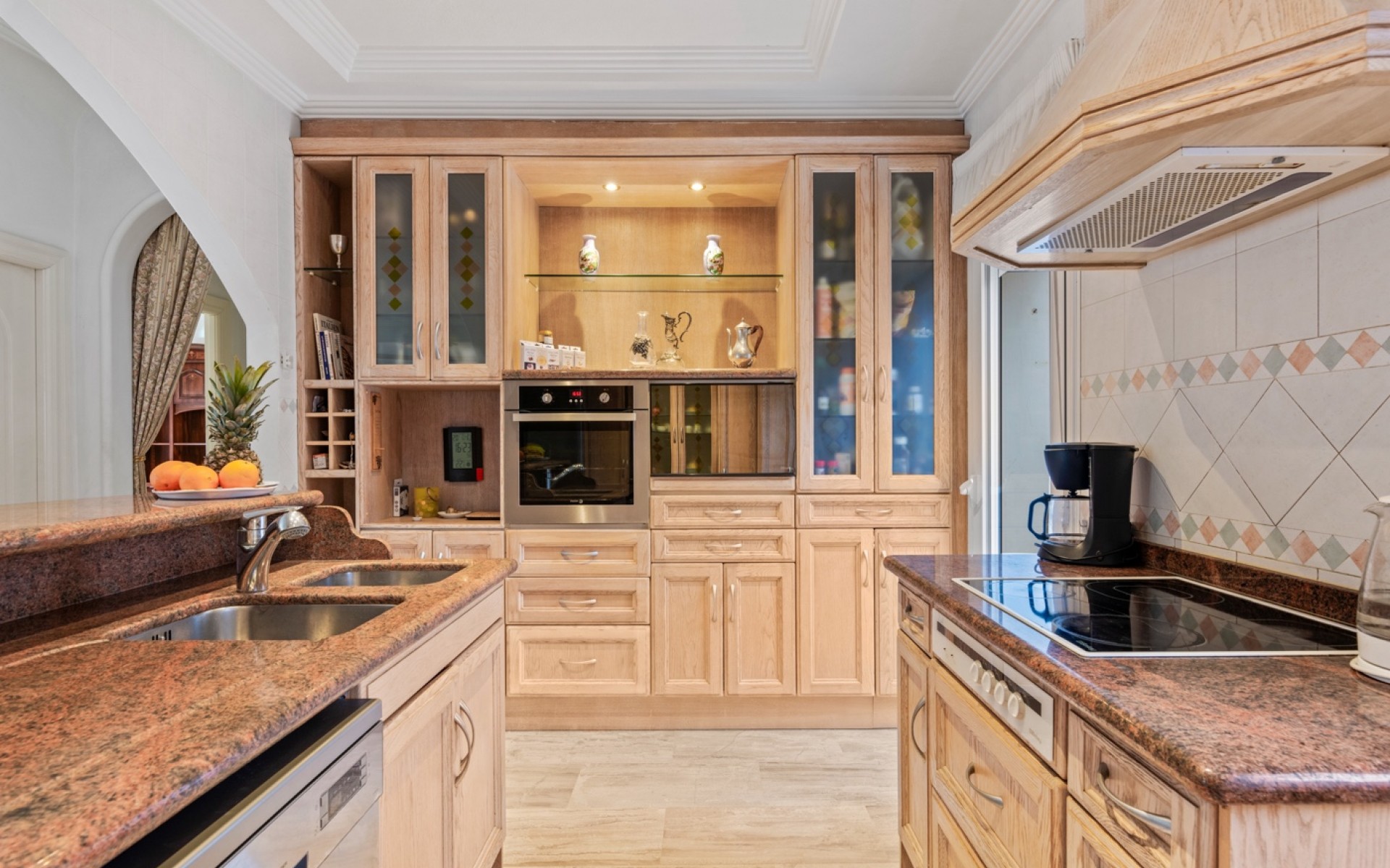 Incredible property located in one of the most exclusive areas of Ciudad Quesada, Doña Pepa, situated on a spacious 1,330 m² plot with 344 m² of living space. A uniquely designed and exclusive home, conceived for maximum comfort, privacy, and elegance. The house is distributed over three floors. On the lower floor, there is a temperature-controlled wine cellar, perfect for wine lovers, as well as the house's utility room. The main floor welcomes you with a guest toilet, followed by a spacious and bright living-dining room, specially designed and connected to an open-plan kitchen with direct access to the outside. The living room is surrounded by large windows that provide abundant natural light throughout the day. Also on this floor are two bedrooms and a full bathroom. From the living room, there is direct access to the outdoor area, where the swimming pool and outdoor kitchen are located. On the upper floor is a spectacular master suite, which features a bathtub and private shower, as well as access to two separate terraces. On this floor, we also find two additional bedrooms, a full bathroom, and a shared terrace. The exterior of the property is one of its greatest attractions: it features a fully equipped, enclosed outdoor kitchen, ready for year-round use, as well as a large swimming pool, ideal for family and social gatherings. The plot also includes a closed garage, additional parking space, and landscaped gardens that completely surround the house. The house has underfloor heating throughout, guaranteeing a high level of thermal comfort year-round. The property enjoys great privacy, thanks to its tall shrubbery, and is located in a quiet, well-connected area, very close to the prestigious Norwegian private school, making it an ideal option both as a permanent family residence and as a high-end investment. An exceptional home that combines design, spaciousness, and exclusivity in a privileged setting.
