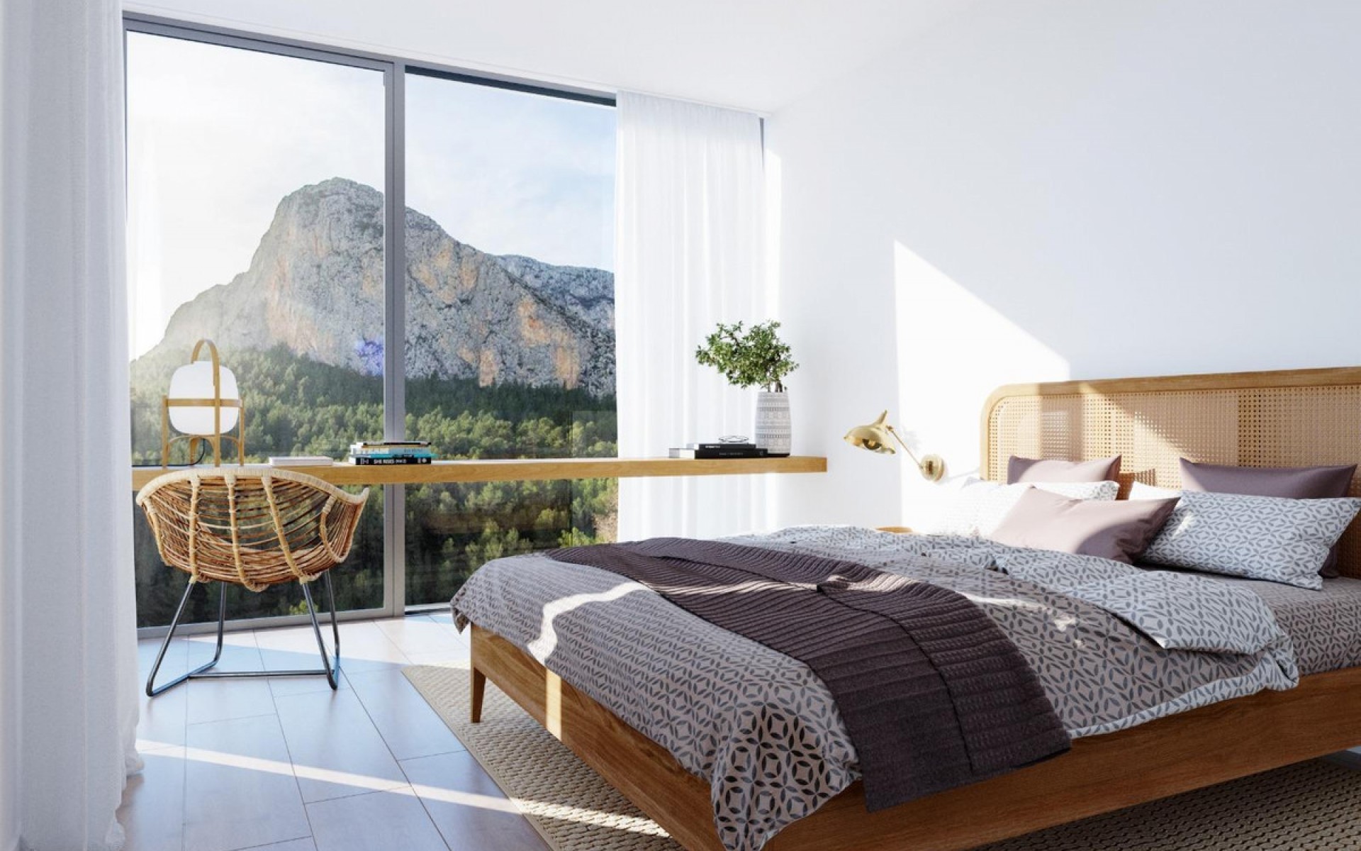 Independent villas with views of the sea and the mountains in the upper part of Polop, at the foot of Mount Ponoig.All include 3 bedrooms, 3 bathrooms, living room with equipped kitchen, dressing room, garage in the basement, large terraces, garden and private pool.Built with excellent qualities that include: porcelain stoneware floors, aluminum exterior carpentry with thermal break and double glazing, armored entrance door, built-in wardrobes, kitchen equipped with electrical appliances, aerothermal hot water, ducted air conditioning, underfloor heating. underfloor heating, motorized blinds, home automation and alarm system, decorative fireplace with bioethanol, infinity pool with glass front, etc.Located in the upper area of Polop, surrounded by nature, trees, mountains and with views of the sea. A quiet area, but well connected by the CV-70 road. Just 5 minutes from the towns of La Nucia and Polop, with all kinds of shops and services, and 15 minutes from Benidorm, its beaches, and the AP7 motorway that connects with the entire Costa Blanca.