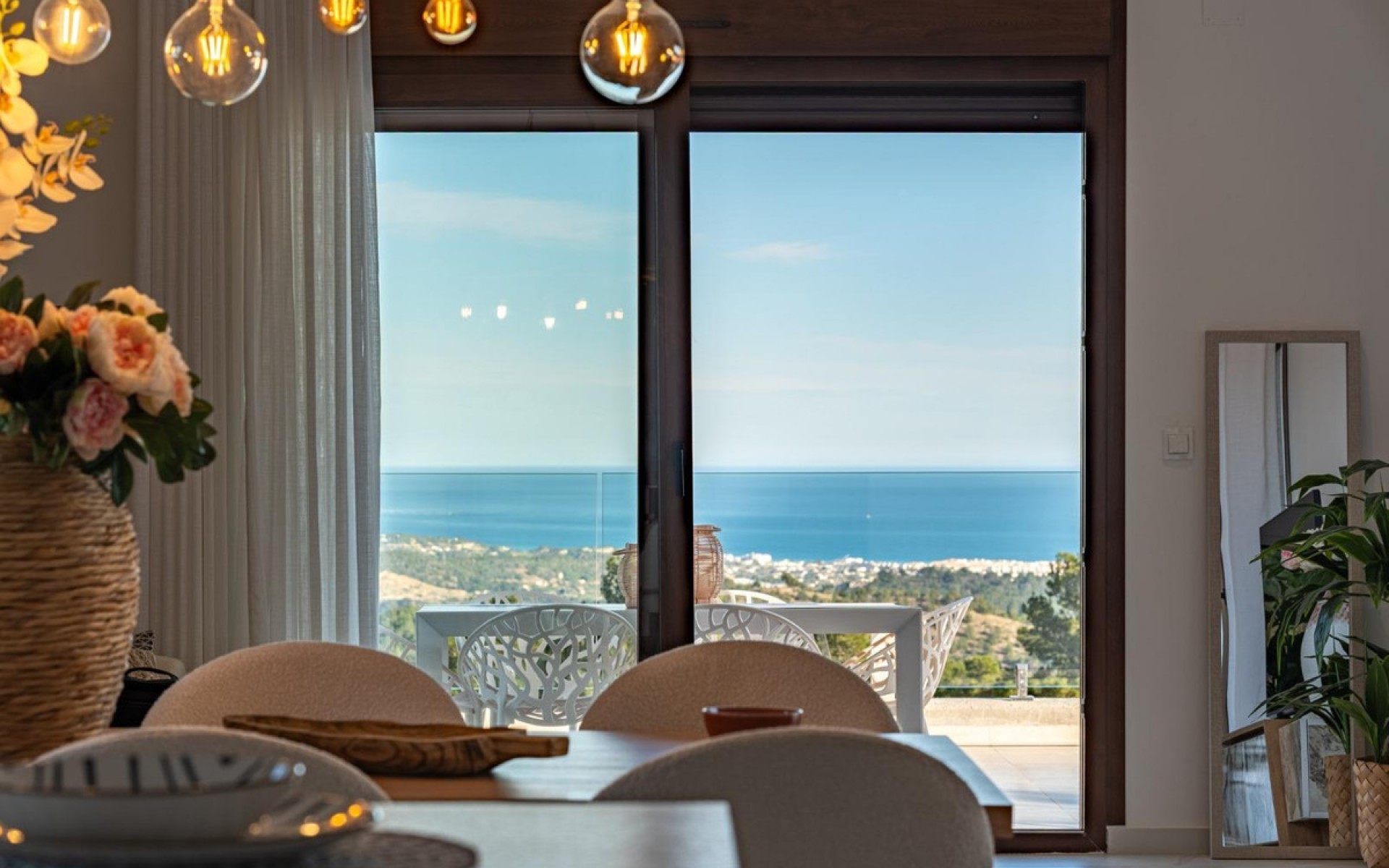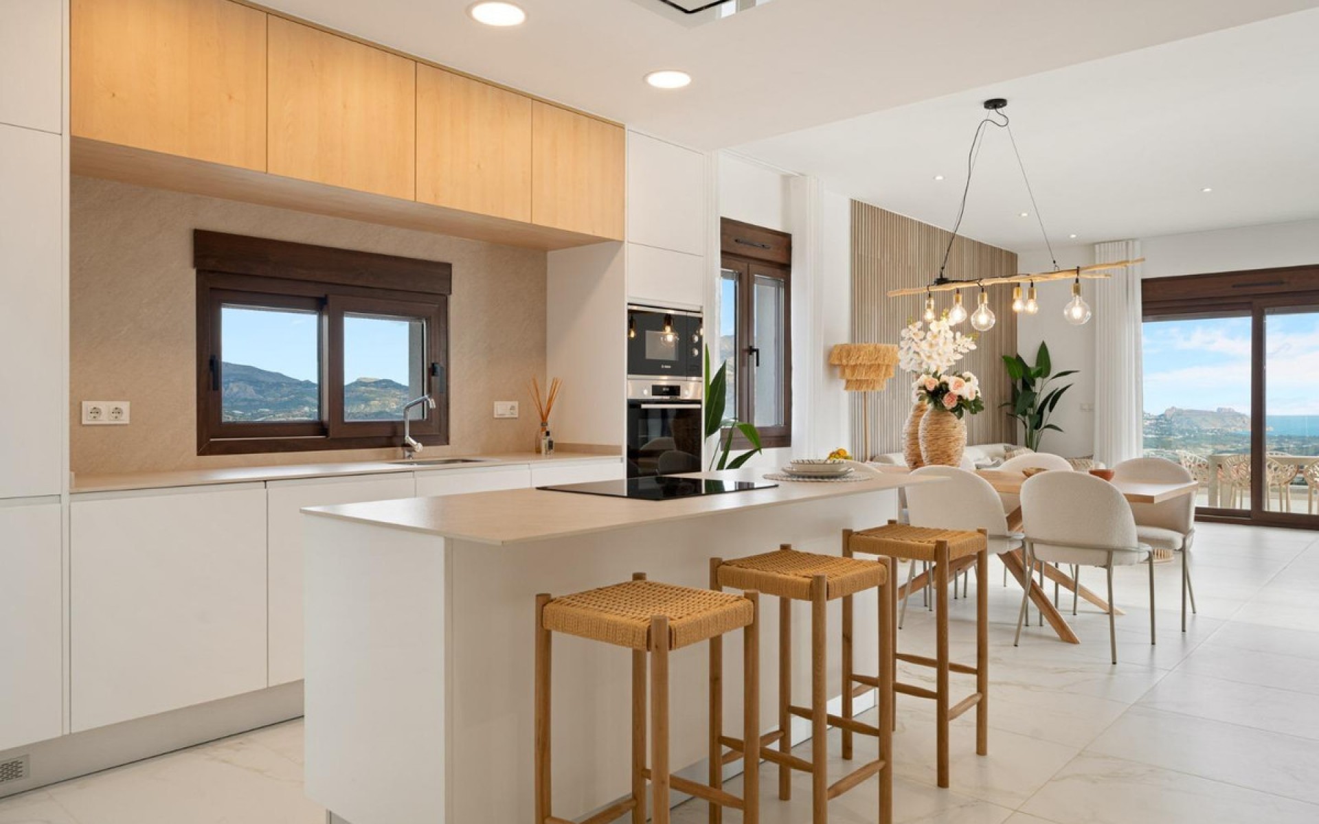 For sale Villa. Location Polop (ALICANTE). Total area 136.68 m2. Number of rooms – 3. Number of bedrooms 3. Number of bathrooms 3. Year of construction 2027. Distance to the sea 8.00 km. Plot area 351 m2. Features: - Sea views - Communal pool - Air conditioning