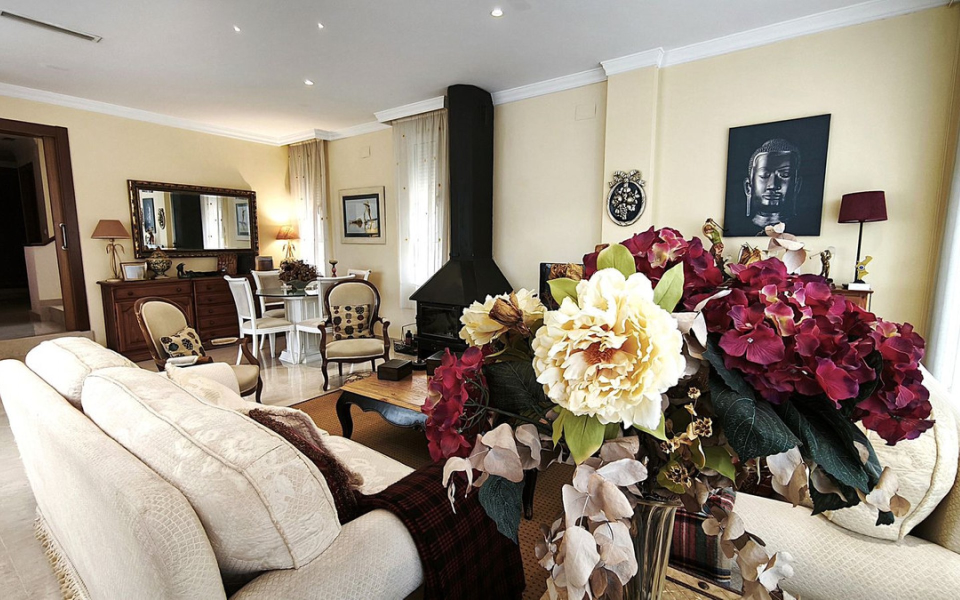 The DETACHED villa for sale is located opposite the golf course. HOY 4 The villa is located on a private cul-de-sac, which guarantees HIGH TRANQUILITY. The property, distributed over two floors and a basement, has a private pool. The plot has an area of 400 m², and the villa has 405 m² of constructed area. The ground floor consists of a large living room with a fireplace and access to the outside terrace. Fully equipped kitchen, with gallery and independent exit to the outside patio and a guest bathroom. The first floor has 4 bedrooms and 2 bathrooms, highlighting the master bedroom with a private bathroom and a private terrace overlooking the golf course. The basement offers a large space currently used as a living room and office, a full bathroom and, in addition, two large rooms that are now used as storage. A garage with capacity for two large vehicles or motorcycles. The plot has a PRIVATE POOL, a terrace, and a BBQ area. Listed below are the features: - AIR CONDITIONING for hot and cold. - The bedrooms are LARGE and DOUBLE, equipped with built-in wardrobes. - The bathrooms are complete, with bathtubs or showers, and most have a bidet. A 10 minute walk away is the "Campo de Golf" tram stop, a service area where yoga classes, a pharmacy, bars and restaurants, and the "Campo de Golf" golf club are offered.