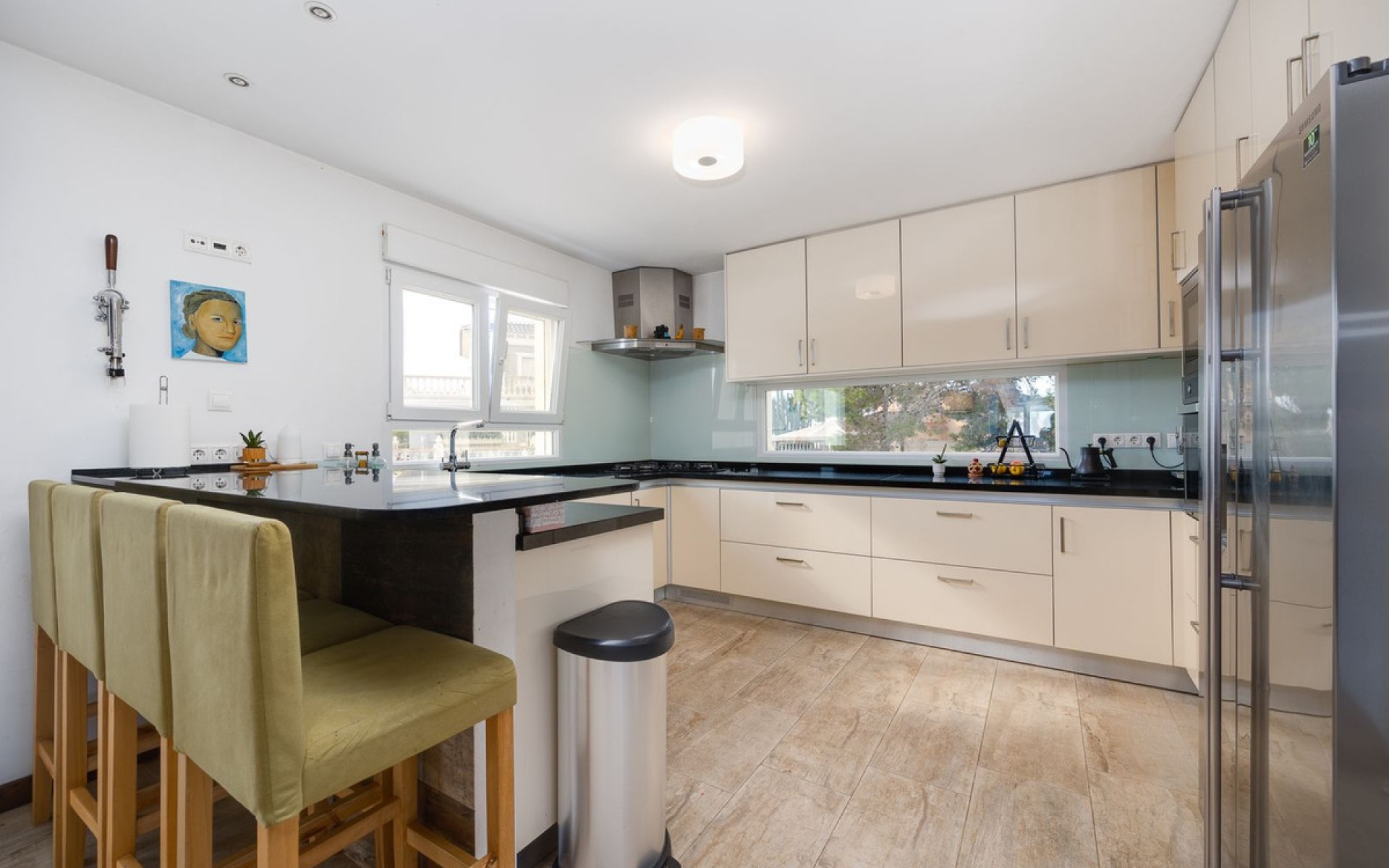 A luxury villa with a large plot of 1,211 m². On the ground floor, there are 3 double bedrooms, one of which is a suite with a walk-in closet and en-suite bathroom, a living room with a fireplace, and an open-plan kitchen with a dining area. The second floor features an office overlooking the green area of the plot and a huge terrace with an open 270-degree view of the lake. The semi-basement is divided into three rooms: a laundry room, a games room, and a hairdresser's office with a bathroom. Solar panels for water heating are installed on the terrace. There is also a storage room with a boiler room on the plot, a private swimming pool (5x12 m), and parking space for about three cars at the entrance. All windows are PVC with double glazing and inert gas filling, and south-facing windows have a reflective coating for privacy and heat reduction. The house features water-based heating on both floors, including bathrooms, with a pellet boiler installed and an easy option to switch to electric if needed. All walls are insulated with polyurethane foam, providing excellent thermal and sound insulation, and the basement room is soundproofed. This is an amazing opportunity to purchase your dream home!