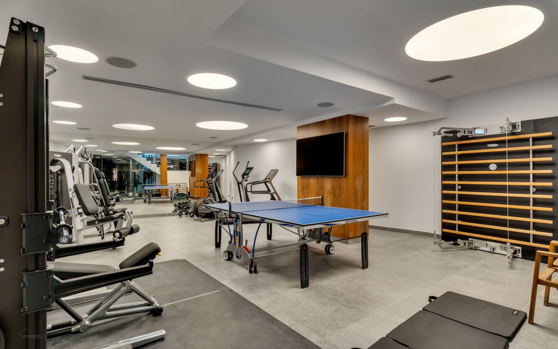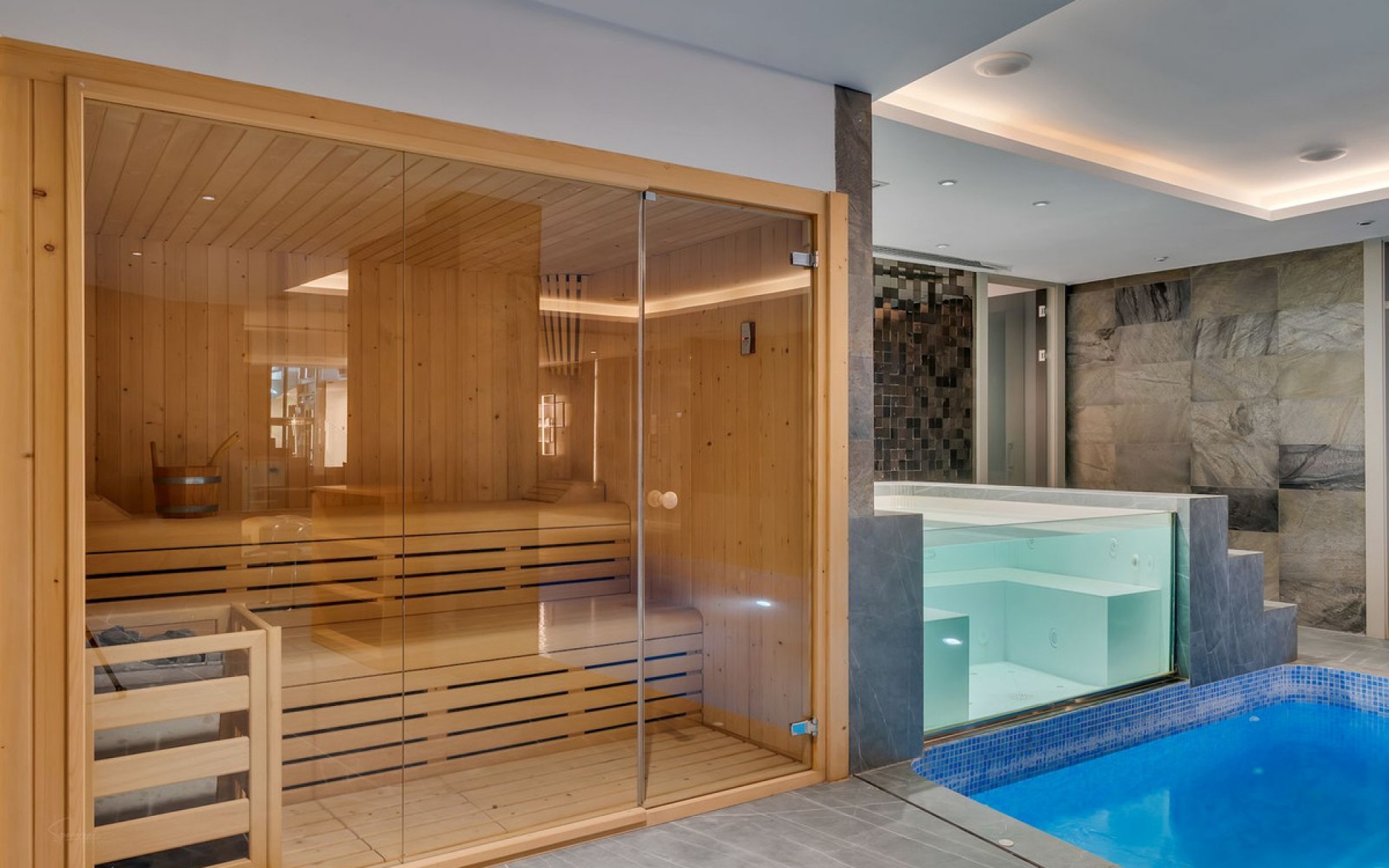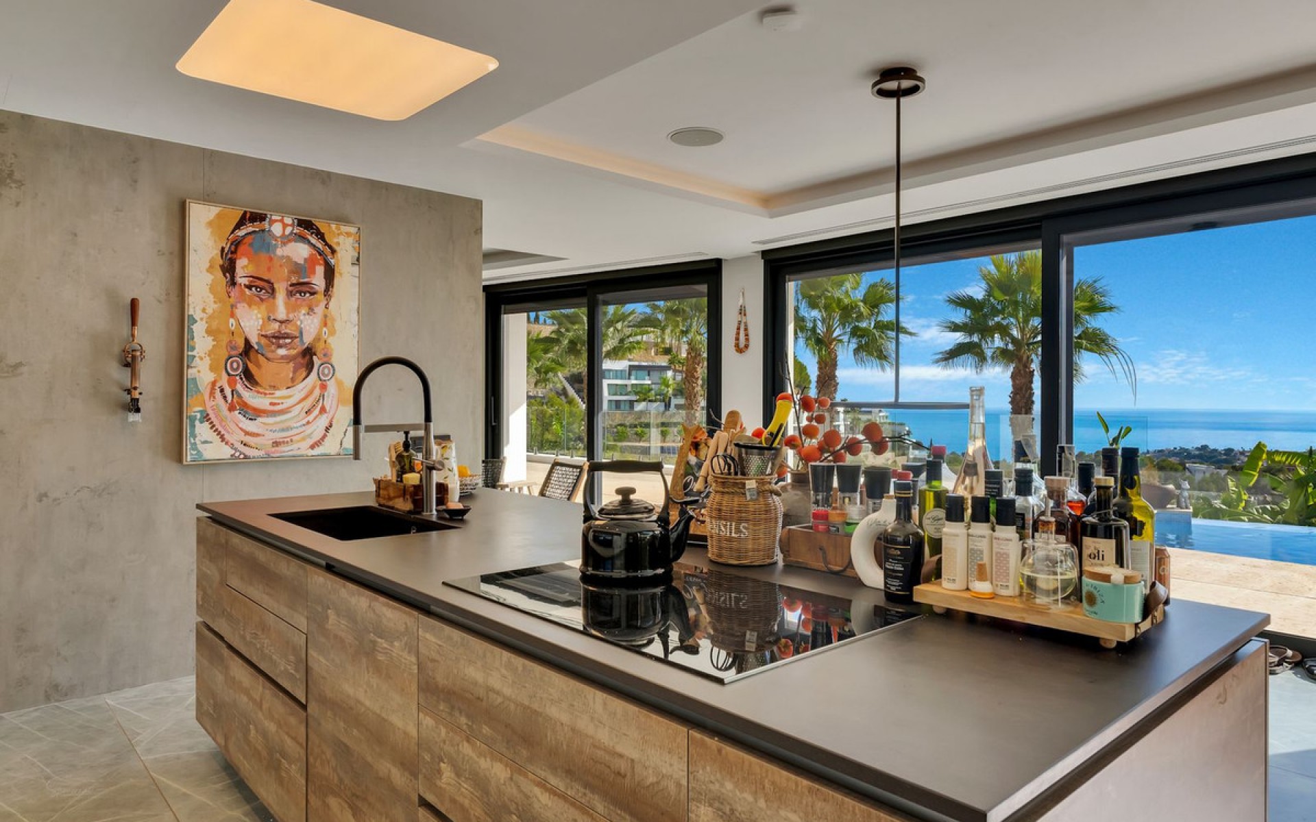 Spectacular villa overlooking the Mediterranean Sea – Raco de Galeno, BenissaThis unique residence is the true definition of luxury and modern living. Located in the heart of the prestigious Rincón de Galeno residential area in Benissa, it impresses with its modern architecture, panoramic glazing, and southern exposure, which fill the interiors with light. Each level offers breathtaking views of the Mediterranean Sea and the Costa Blanca coastline. The villa has been designed with attention to every detail and spread over four impressive floors, connected by elegant stairs and a panoramic glass elevator. Entrance level The top floor welcomes you with a representative entrance that makes an impression from the very first moment. There are spacious terraces, covered parking spaces with a distinctive sail-shaped pergola, and a hall leading to the elevator and stairs connecting all levels. On the same floor, there is a covered terrace with a unique view of the sea—the perfect place to enjoy your morning coffee in peace and privacy. Night area The lower level is occupied by an elegant bedroom area with three spacious rooms, each with a private bathroom and access to the terrace. One of the bedrooms also offers a walk-in closet for the most demanding owners. Each window offers a view of the sea and the garden, creating a true oasis of peace and relaxation. Living area The ground floor is the heart of the entire residence – an impressive, open-plan living area combining a living room, a kitchen with a large island, and a dining room. Glazed walls open the interior onto a terrace of over 150 m², where there is a spectacular heated infinity pool (78 m²) with a relaxation area. The terrace also features a summer kitchen with a barbecue, an outdoor dining area, a chillout zone, and an outdoor bathroom – the perfect place to celebrate the Mediterranean lifestyle all year round. This level also features a luxurious bedroom (40 m²) with a private lounge, study, dressing room, and spacious bathroom, as well as a guest toilet. Recreation and wellness area The 234 m² basement houses a private entertainment and recreation center: a recreation area with a bar, pool table, and home theater, a modern gym with professional equipment, a luxurious spa with a sauna, jacuzzi, and indoor swimming pool (23 m²) with a counter-current system. This area is complemented by a bathroom, laundry room, utility room, and garage for several cars. Technology and finishes The villa was designed with maximum comfort and modern technological solutions in mind. It offers, among other things: underfloor heating with an aerothermal system, ducted air conditioning supported by split units, a 7.5 kW photovoltaic system (15 panels), smart glass, a home automation system, an integrated audio system, an alarm system, and a fiber optic connection. The entire property is finished with the highest quality materials – from designer woodwork and porcelain floors to elegant bathrooms. Surroundings The property is surrounded by a carefully designed garden with a fountain, relaxation areas, and an automatic irrigation system. The villa is located just 2.5 km from La Fustera beach and the picturesque coastal trail. Nearby are the towns of Moraira and Calpe, offering the best beaches of the Costa Blanca, full infrastructure, medical services, and a wide range of recreational and gastronomic options. This is a residence that combines prestige, privacy, and a unique lifestyle. It is an ideal proposition for those who want to wake up every day in luxury, with a view of the endless blue of the Mediterranean Sea. More details available on request.