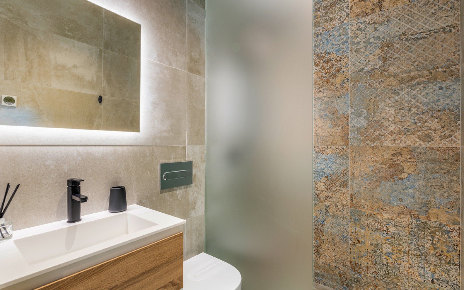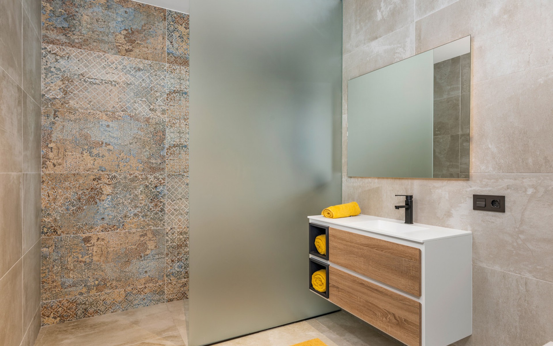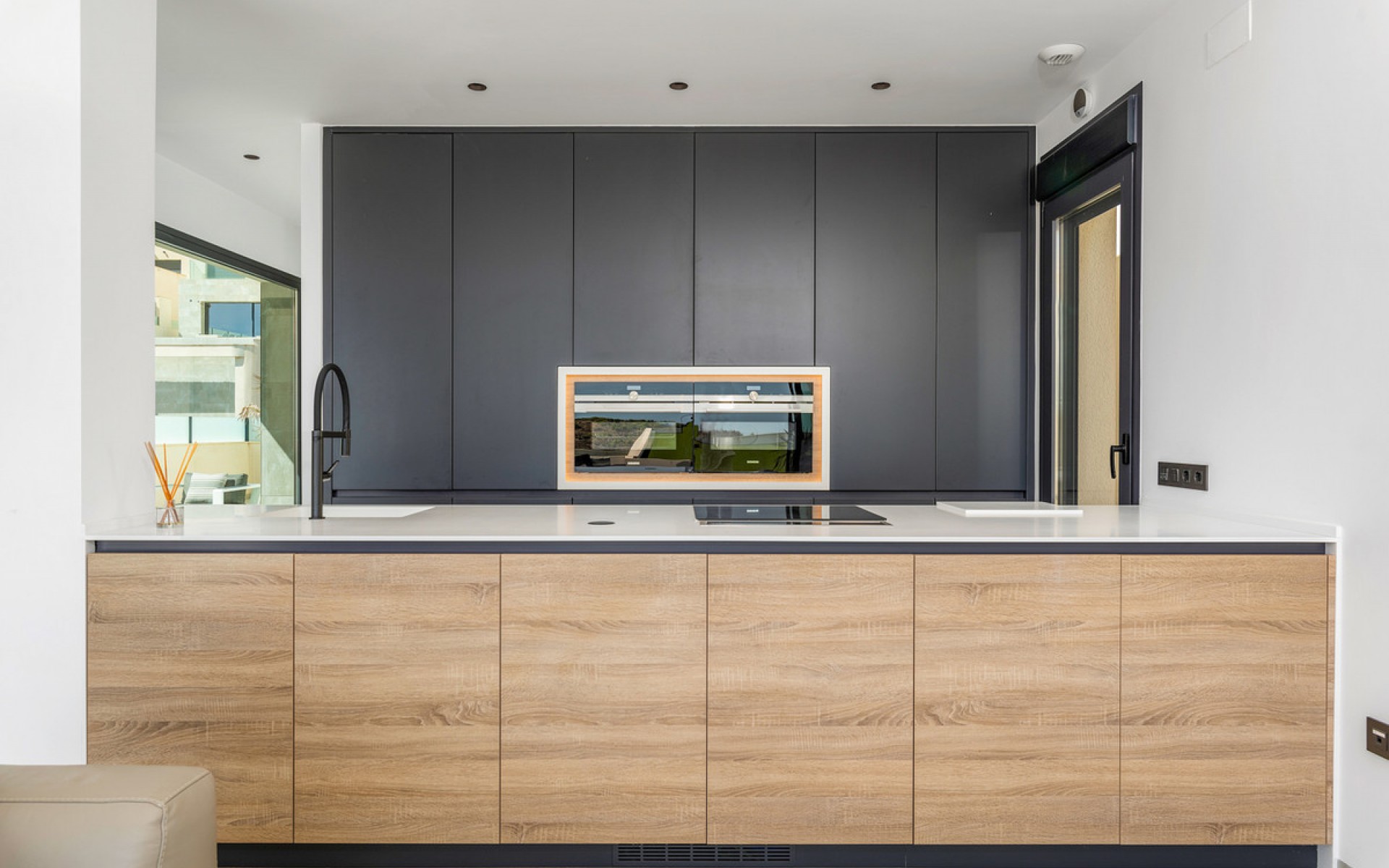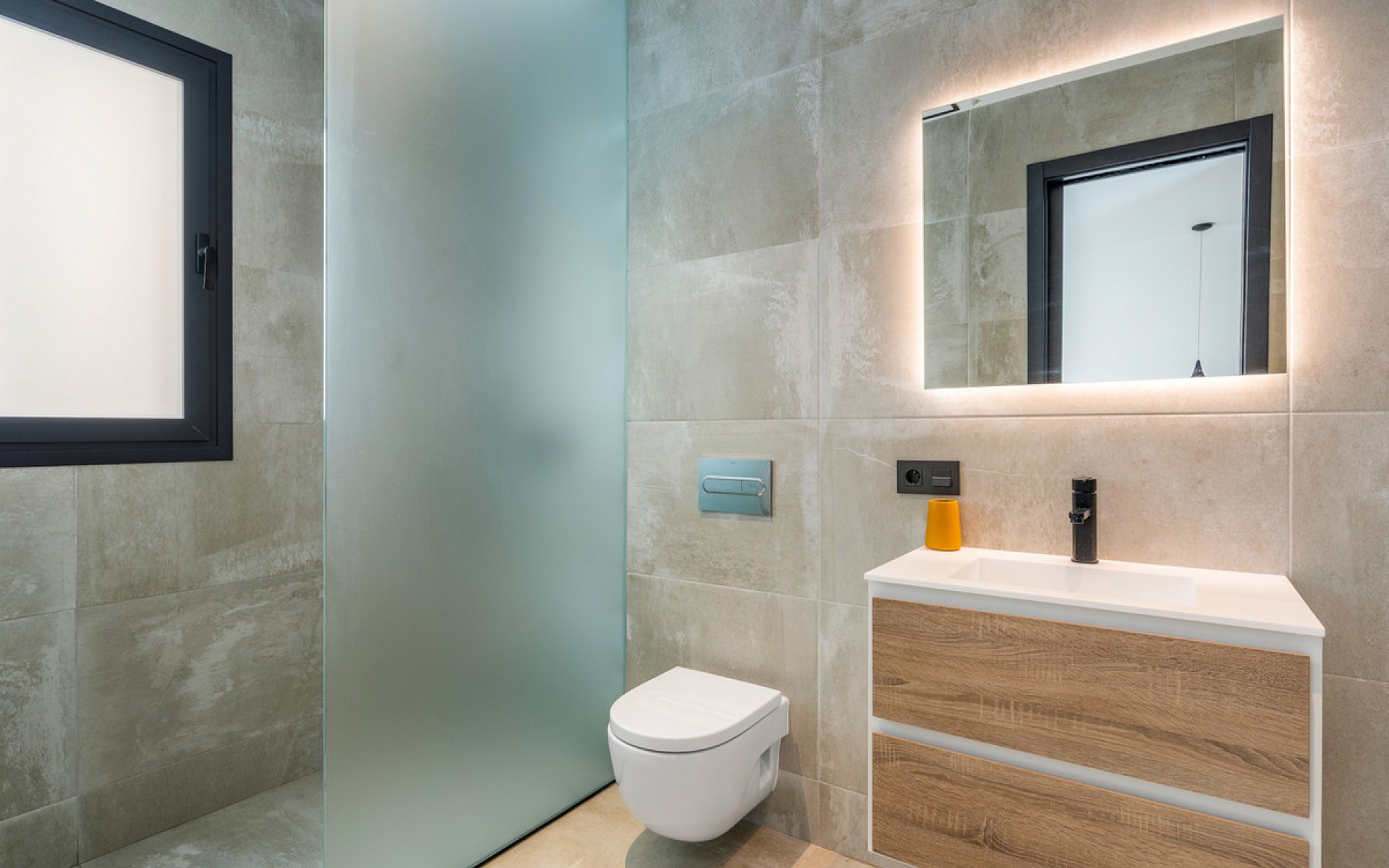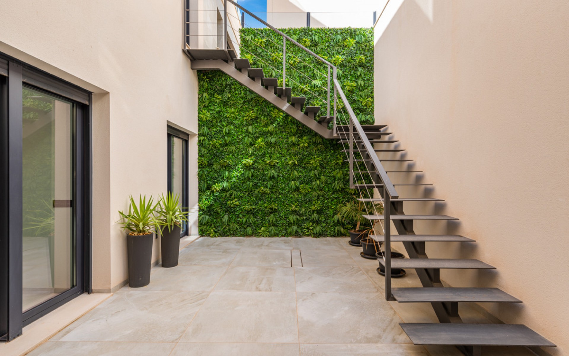 Luxury 5 bedroom / 6 bathroom villa with views in Ciudad Quesada. Beautiful luxury villa with a total living area of 333 m2 divided on two levels. It consists of a total of 5 double bedrooms, all of them with en-suite bathrooms, an additional bathroom and a guest toilet. The main floor consists of two bedrooms with en-suite bathrooms, a guest toilet, and a lovely open plan kitchen, living room and dining room. In the living area you have large sliding doors that opens up completely and gives a great indoor / outdoor living feature. The lower level consists of three bedrooms with en-suite bathrooms, a kitchen and utility room, a large living room, a bathroom, two storage rooms. The rooms in this level have access to a lovely patio. From the living room on this level you have direct access to the garage and techical room. The villa is equipped with central air condition (hot/cold), underfloor heating in the bathrooms, double glazes windows and security door. Outdoor areaThe villa is set on a lovely corner plot of 462 m2. The pool area is east facing, giving you amazing views over the surrounding area and to the sea. Around the pool you have a beautiful tiled area with space for several outdoor seating areas and sun beds. From the pool area you have external stairs leading you to the large roof terrace. Here you have one part that is tiled and the other part with artificial grass, both of them with a lot of space for outdoor entertainment and with amazing views. At the entrance to the house you have another lovely tiled garden area that faces west. This area is perfect to enjoy the afternoon / evening sun. At the lower level you can find a large tiled patio with an artificial vertical garden. This patio can be access from the garden through external stairs, and also from the living room and 2 of the bedrooms in the lower level.