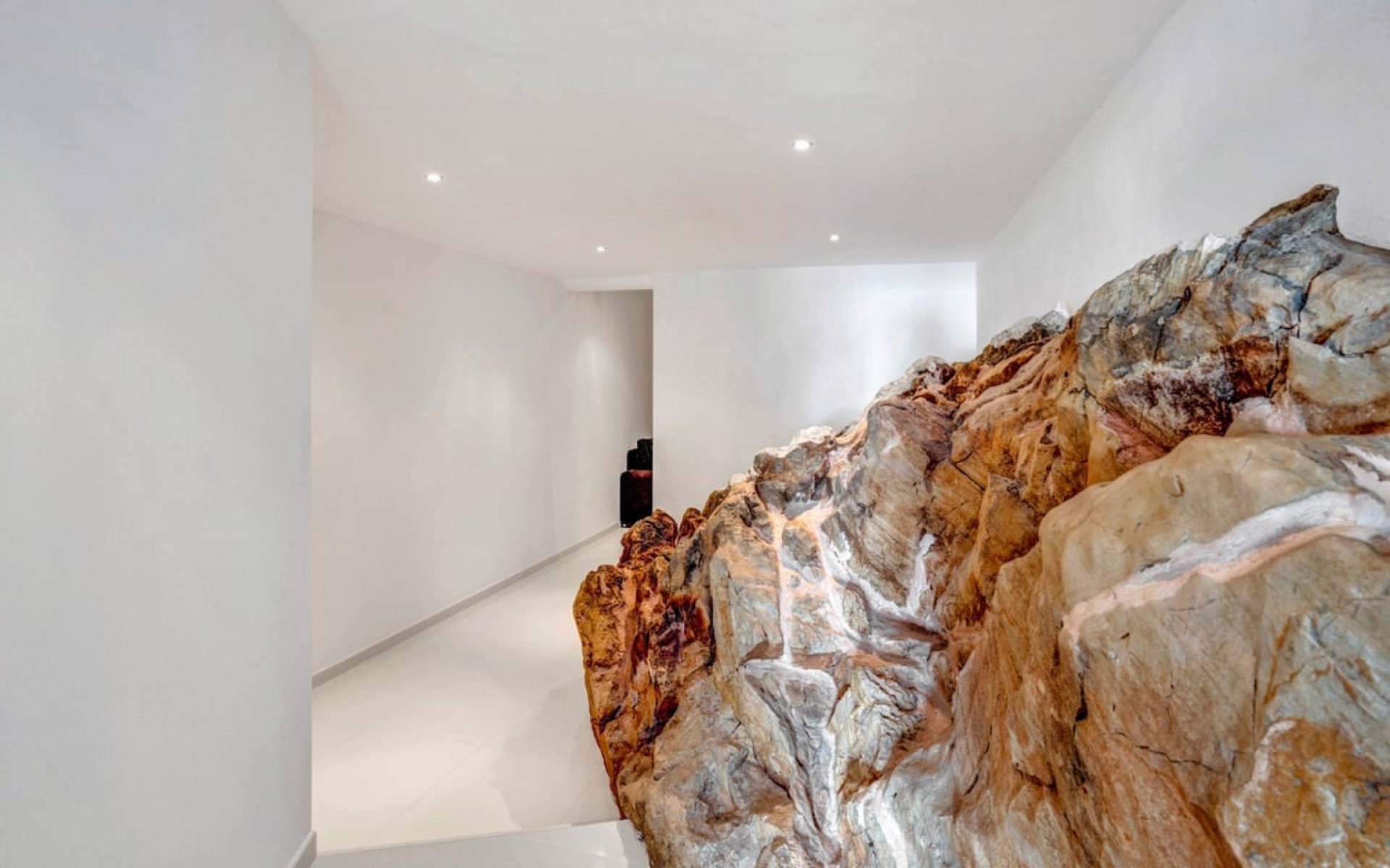 The villa enjoys several terraces, including a main terrace with a private pool, exterior shower and toilet, plus a shady rear terrace that remains cool in summer. The architecture integrates the natural rock in several locations as striking focal points, adding unique character to the home. The landscaped garden and parking complete the outdoor offering.