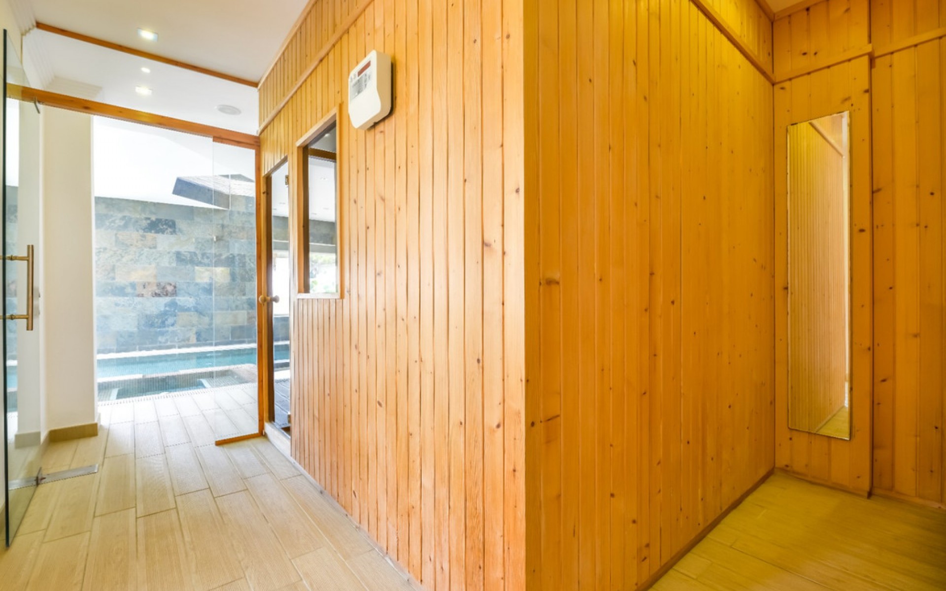 Big luxury villa for sale in La Fustera, situated just 1,3 Km from the beautiful La Fustera Beach, supermarket, restaurants, bus stop..., very close to Moraira and Calpe. This wonderful modern mediterranean style villa enjoys very nice sea views, plenty of sun (South facing) and maximum privacy. It is located on a superb plot of 1.840 m2 and has a constructed area of 585 m2, distributed over two floors + basement floor as follows: on the main floor we have the entrance porch, a fabulous 25 m2 hall with a beautiful double staircase that accesses the upper floor, an indoor spa and relaxation area with a 6x3 meters heated pool + jacuzzi + waterfall, sauna for 6 people, 25 m2 gym and 1 toilet, large 15 m2 laundry pantry, 30 m2 dining kitchen with island, fabulous dining living room of 75 m2 (with designer fireplace), and 50 m2 porch (perfectly equipped with a summer kitchen), which merges with the 100 m2 exterior terrace where we have a wonderful 70 m2 heated pool. Integrated into the garden, we also have a barbecue area that communicates with the exterior terrace. On the upper floor we have 5 large bedrooms (25 m2 + 20 m2 + 18 m2 + 18 m2 + 12 m2), 4 bathrooms en suite, a dressing room and 2 private terraces (80 m2 + 25 m2). In the basement floor we have a party room (with bar) of 40 m2 (with natural light through an English patio), 1 courtesy toilet, guest apartment (also with access from the outside), consisting of 1 bathroom, 1 bedroom of 12 m2 and open plan kitchen dining living room of 25 m2. In addition, on this floor we have an open space of 110 m2 not developed that offers a multitude of expansion options for this property. This impressive villa stands out for its beautiful design, for its exclusive materials and for its top quality finishes. It is equipped with underfloor heating and air conditioning, high end exterior carpentry, designer interior carpentry, designer kitchen fully equipped with Smeg appliances, designer bathrooms, alarm + cameras, LED lighting... In addition, it enjoys large exterior parking areas for several vehicles and an impressive 50 m2 pergola (for 3 vehicles, which could easily be converted into a garage), located next to the main entrance of the property. The garden is spectacular, with large grass areas, beautiful palm trees and is low maintenance (with automatic irrigation system).