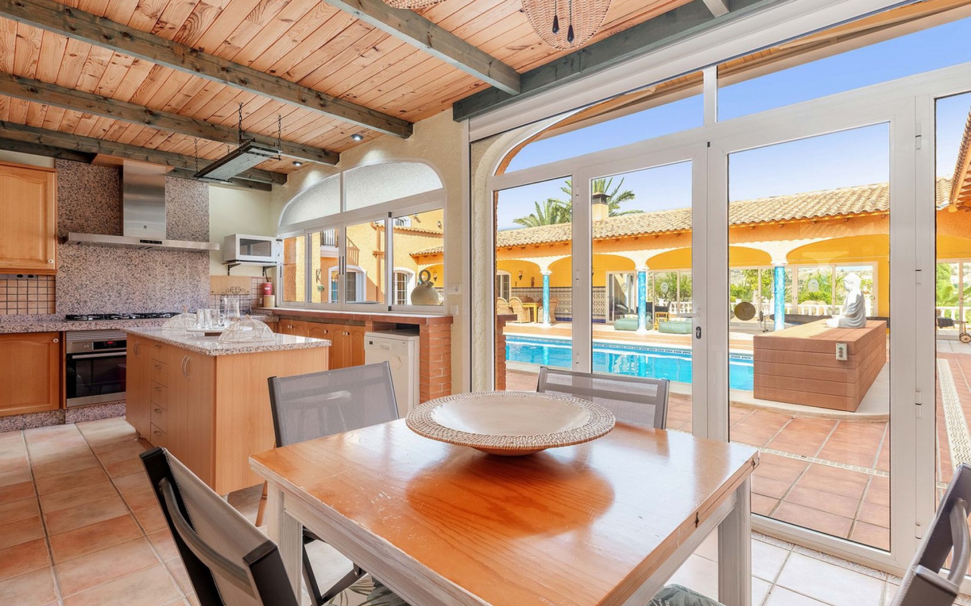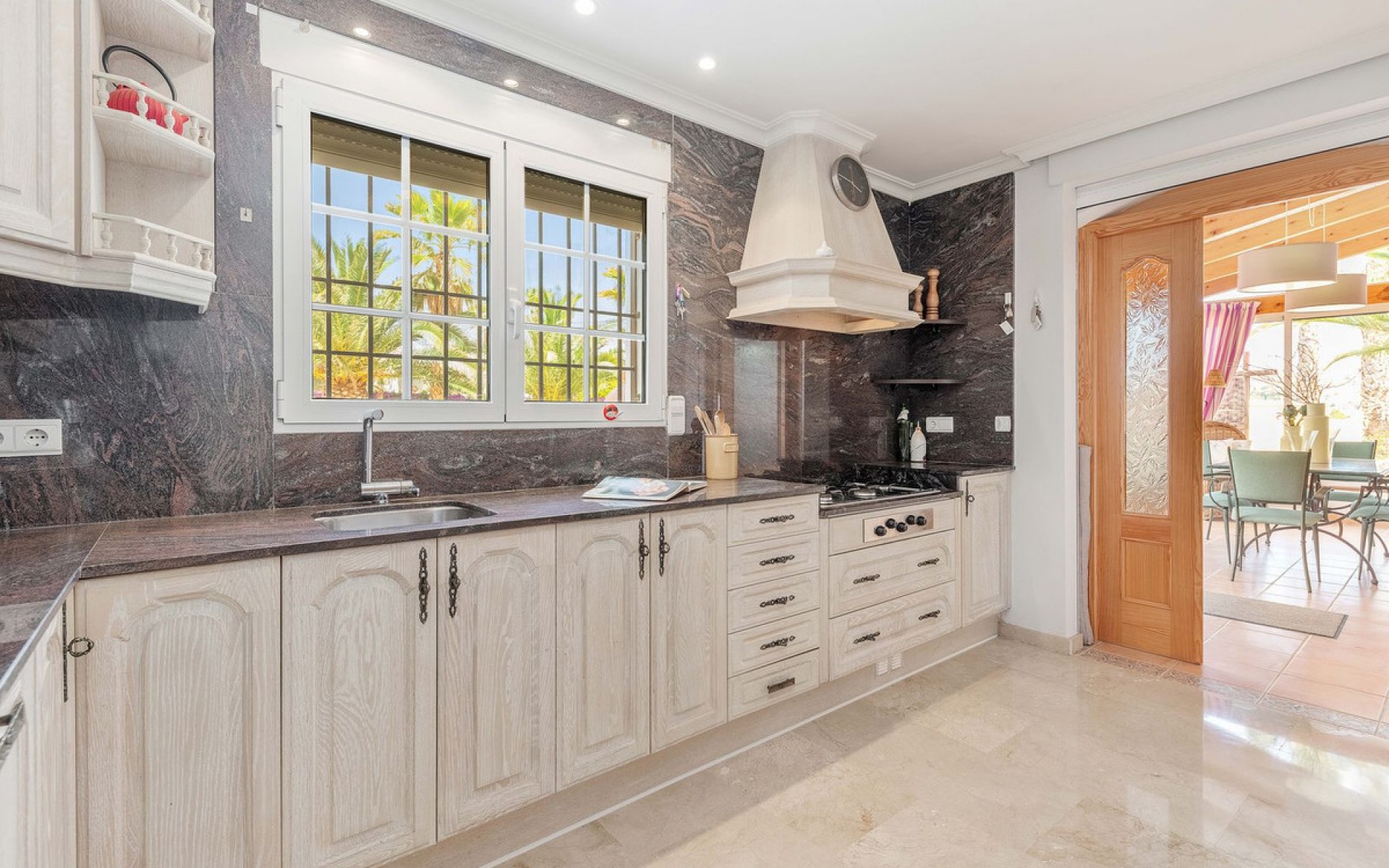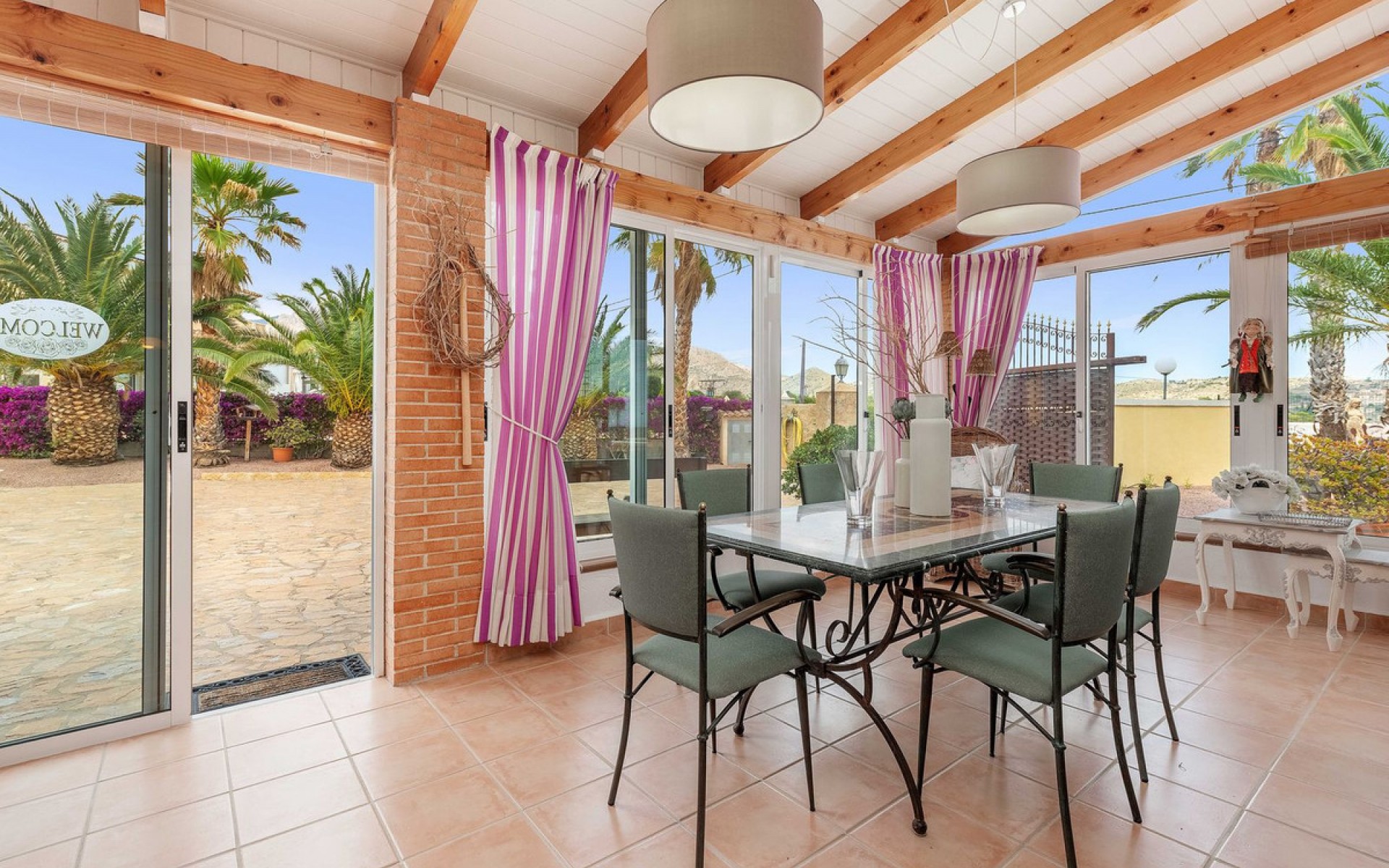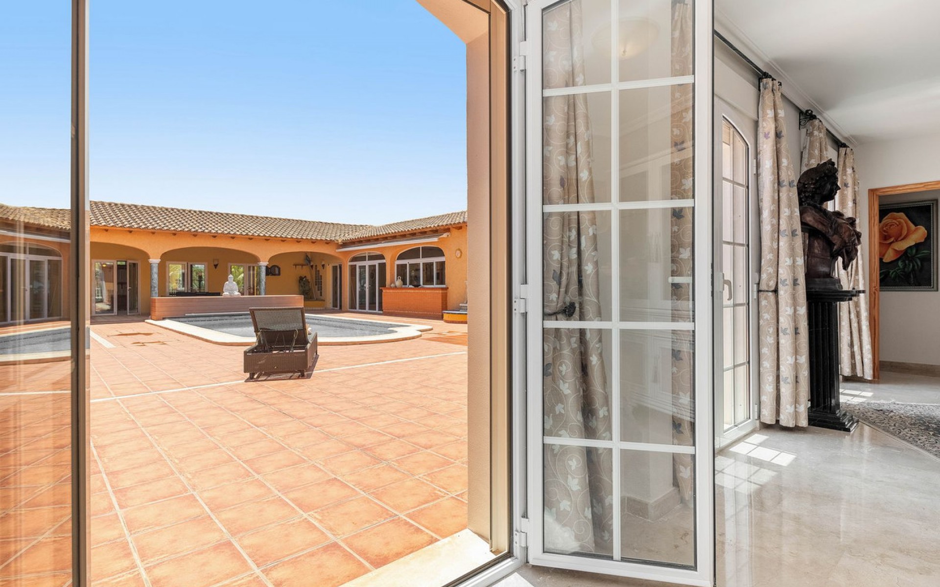 In Costa Blanca North, in the sought-after residential area of Pla Lloma, Busot is this majestic courtyard-design villa, set on a large flat plot of more than 8 times its size. In close proximity to the nearby picturesque village of Busot, Bonalba Golf course, the beautiful coastal town of El Campello and the city of Alicante, this excellently located and imposing property is very well presented and affords views to the mountains and Mediterranean sea. Private and spacious, the property offers a rare courtyard design. VILLA Villa built in 2001 with 5 bedrooms and 5 bathrooms and a substantial swimming pool built within the construction itself. This unique Mediterranean courtyard design puts the swimming pool firmly at the heart of the villa providing a private and intimate outdoor space which can be accessed from various parts of the house. LOCATION Urbanización Pisnella is just 5 minutes by car to the local shops and village of Busot and just 10 minutes to the local golf course and motorway connections, 15 minutes to El Campello and 20 minutes to Alicante. ACCESS, ENTRANCE AND PARKING The property is accessed via a residential road which takes you to the end of the cul-de-sac and leads you to an automated gate accessing the drive with parking for several cars and there is a garage also for 3/4 cars at the end of the driveway. DISTRIBUTION The villa is built all on primarily two floors, although there is also a roof top terrace with magnificent long-range views to the sea as well as a bodega area below. 5 bedrooms, 5 bathrooms in total with large lounge, dining room, games room, sauna and a bedroom on the ground floor and 3 bedrooms , lounge and private terrace on the upper floor. Another possible bedroom in the underbuild next to the bodega. EXTERIORS A fantastic flat plot of over 4000m² ensures privacy, offers abundant space, and provides a tranquil setting. The land and garden have been meticulously landscaped, featuring numerous Mediterranean trees, shrubs, and fruit trees. ORIENTATION South, southwest. An outstanding home.