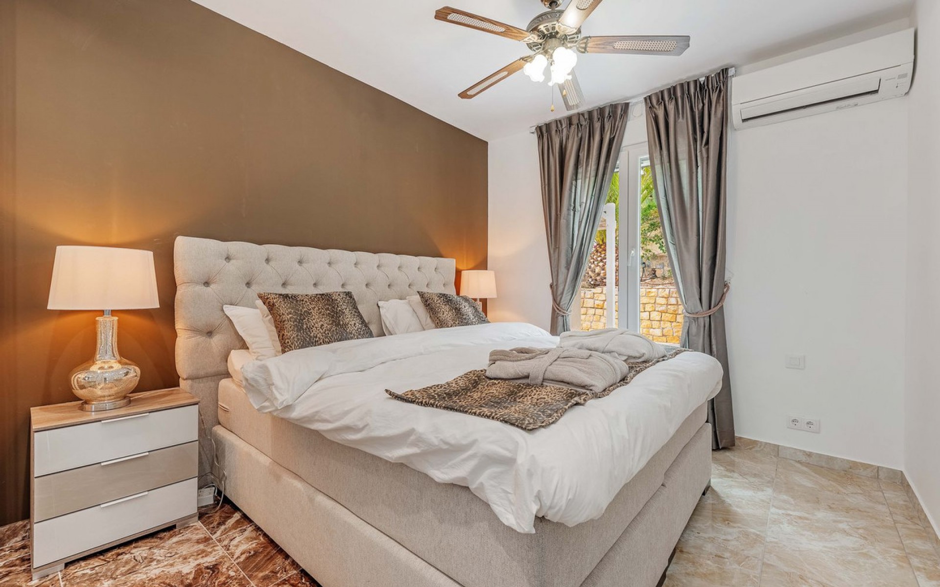 The tranquil cove is ideal for sunbathing or swimming, away from the crowds. Additionally, Villa Bahía Verdosa is conveniently located near Coveta Fuma's local shopping center. Its proximity to Alicante—just 25 minutes away—ensures easy access to the international airport, two golf courses, and a marina.