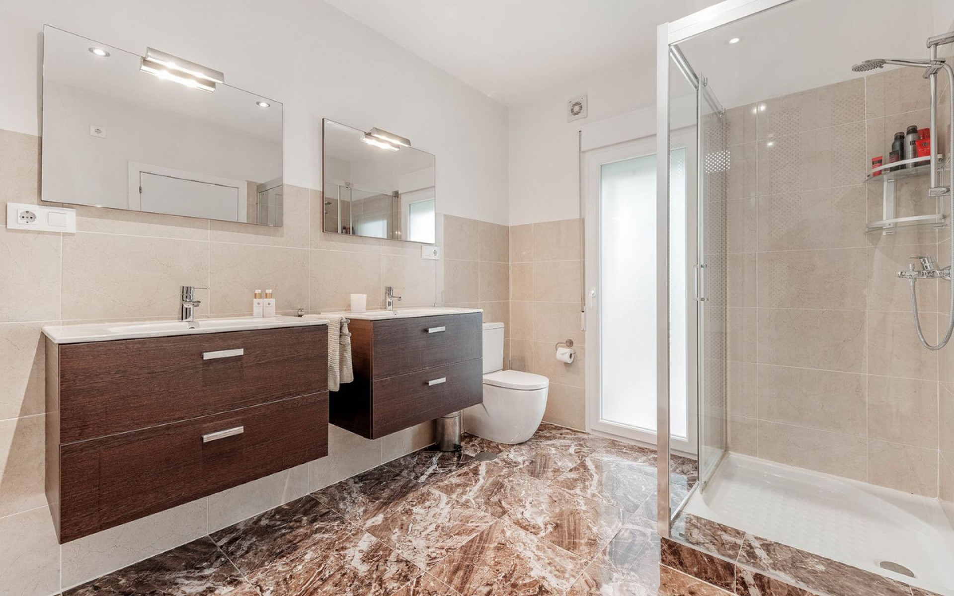 - The master bedroom boasts captivating sea views and an en-suite bathroom with dual sinks.