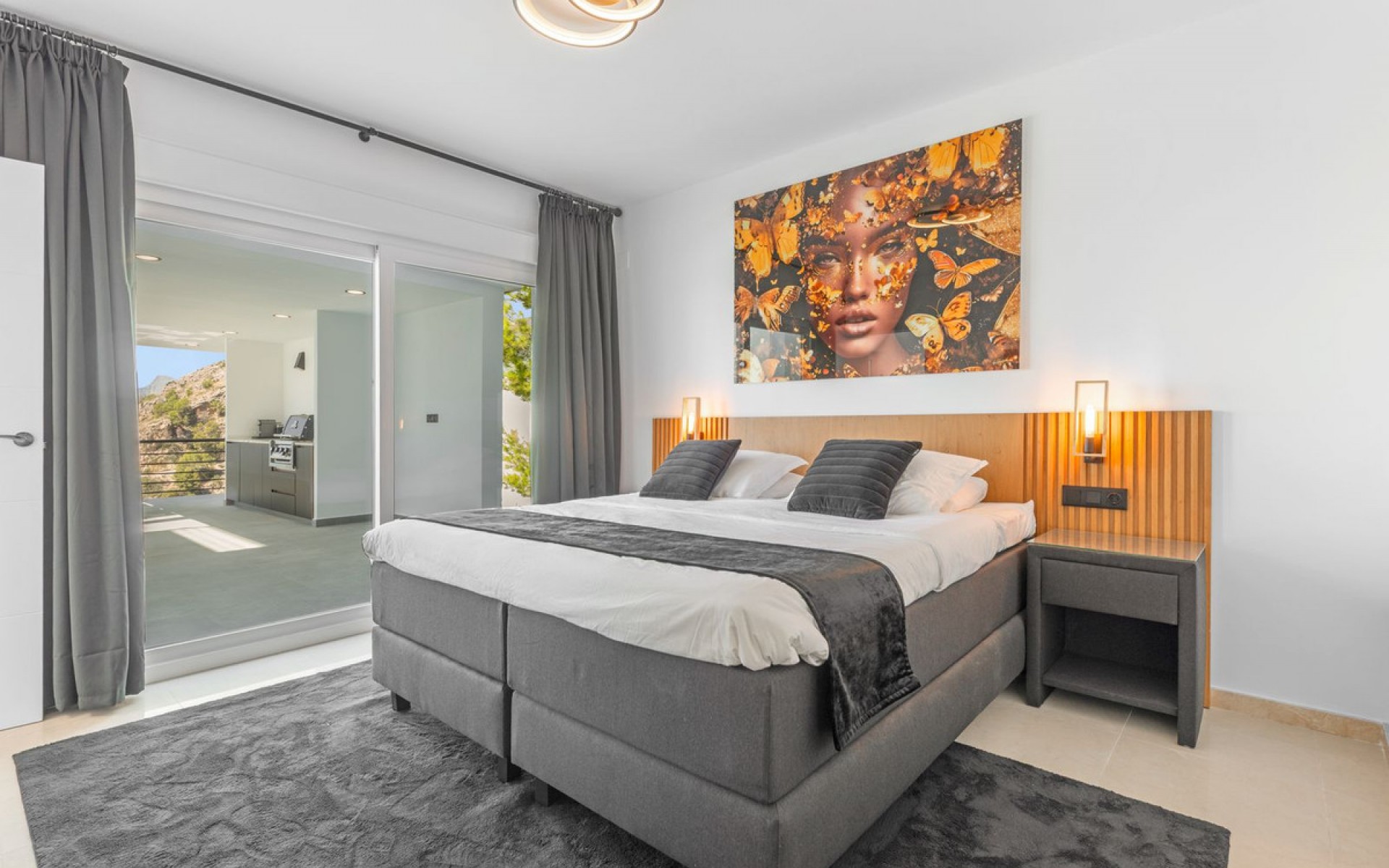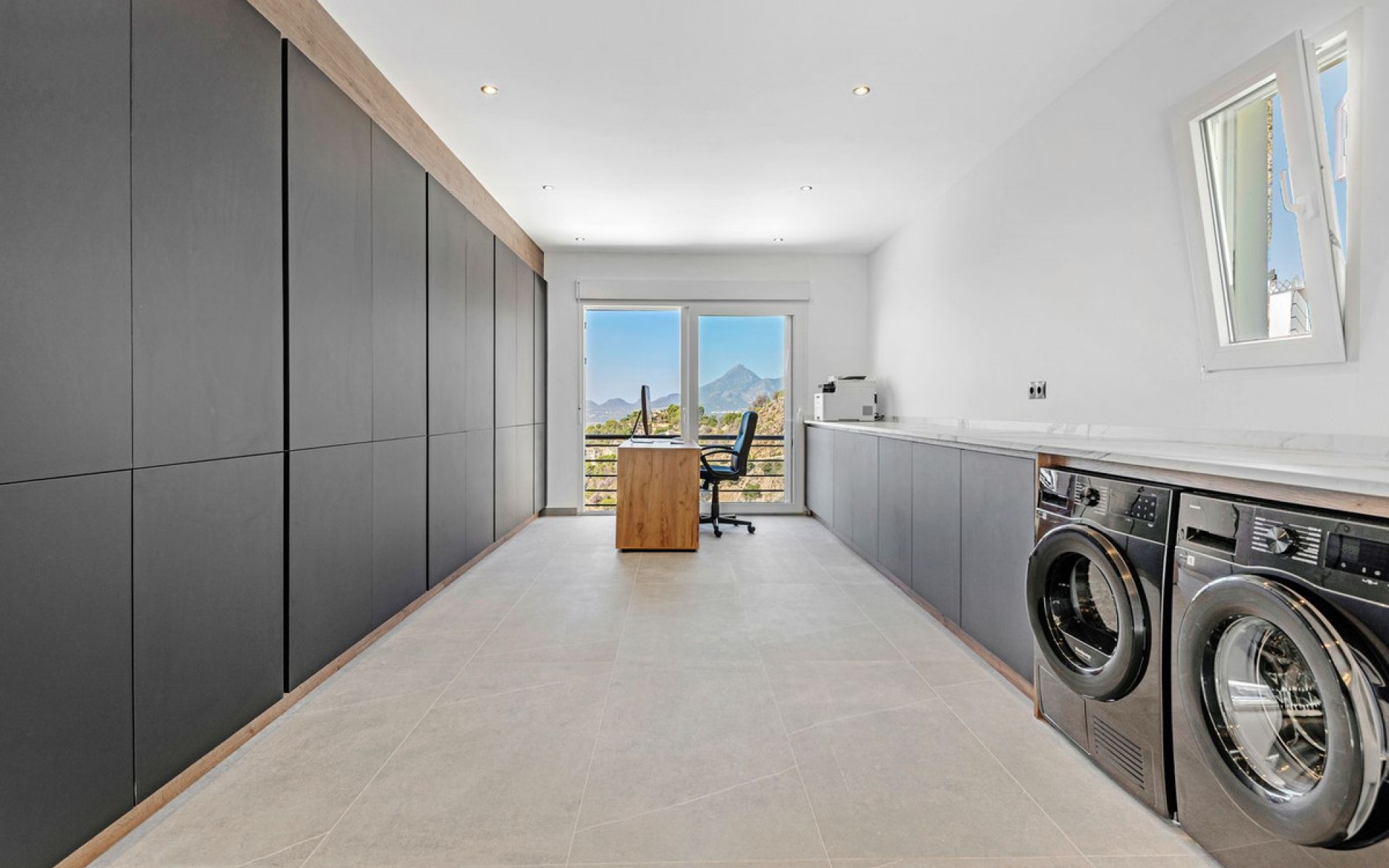 CONTEMPORARY VILLA WITH PANORAMIC VIEWS IN ALTEA HILLS This exceptional villa in Altea Hills has been completely refurbished and extended to the highest standards, presenting itself in immaculate condition both inside and out. Every detail has been thoughtfully designed to combine modern comfort, refined elegance, and spectacular views over the Bay of Altea, the Mediterranean Sea, and the surrounding mountains. Distributed over three floors, the villa offers generous living spaces filled with natural light. The open-plan living room flows seamlessly into a state-of-the-art kitchen with an island, fully equipped with high-end appliances and designed for both style and functionality. Floor-to-ceiling windows open directly onto expansive terraces, creating a perfect harmony between indoor and outdoor living while framing the stunning sea and mountain views. The property includes several en-suite bedrooms, fitted wardrobes, air conditioning, and contemporary finishes of the highest quality. The outdoor areas have been conceived as a true retreat for leisure and relaxation. Wide terraces and a newly built covered kitchen and dining space by the pool provide the ideal setting for year-round entertaining. The landscaped garden features artificial grass, a trampoline, and a wooden treehouse, making it particularly attractive for families. The private pool blends beautifully with the surrounding scenery, offering a unique vantage point to enjoy the coastline. By day, the panoramas are impressive; by night, the lights of Altea create a magical and exclusive atmosphere. Altea Hills is one of the most prestigious gated communities on the Costa Blanca, renowned for its privacy and 24-hour security. A main barrier with on-site staff carefully monitors access, ensuring residents' peace of mind at all times. This villa perfectly combines luxury, privacy, and security with incomparable Mediterranean views — an impeccable property ideal as a permanent residence or as a holiday home in one of the most exclusive enclaves of the Costa Blanca.