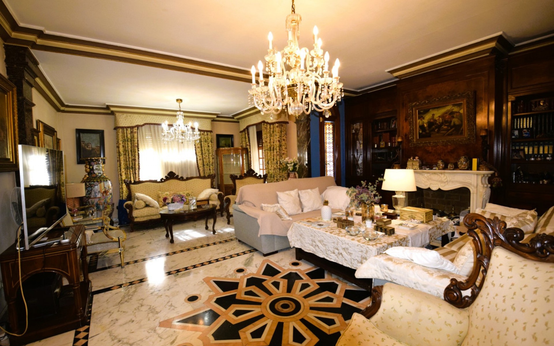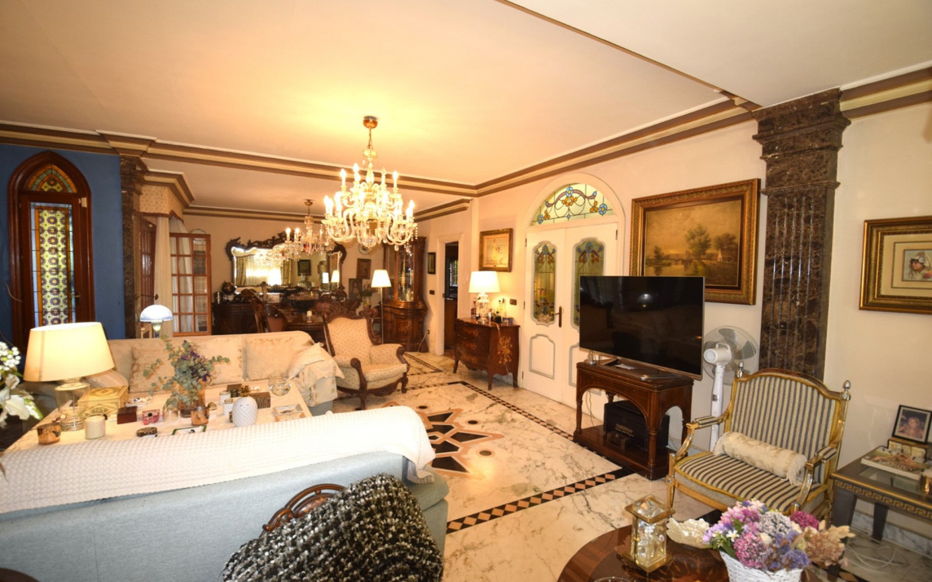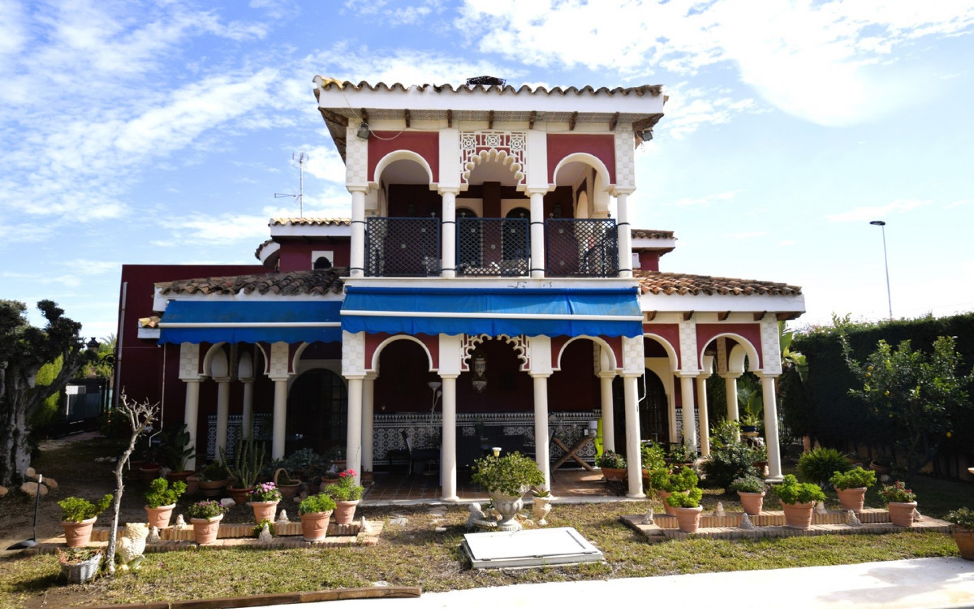 We present this special, charming and unique villa in Torrevieja, Aguas Nuevas area. On a 1060m corner plot is this luxurious villa fully equipped to enjoy. It has 8 bedrooms and 5 full bathrooms, 1 toilet and even a fully equipped 80m square guest house, with a bedroom, a full bathroom, an American kitchen and a living-dining room! The villa has 2 floors. Large pool and garage for several vehicles. On the ground floor we find a huge hall with a 9m high ceiling, an office (which can be used as a bedroom), a bedroom with a built-in wardrobe and a full bathroom en suite, a guest toilet, a large living room with a fireplace and luxury furniture. , kitchen-dining room with gallery, garage for two cars. On the second floor we find 6 bedrooms, 3 bathrooms of which 2 are en suite, several dressing rooms and two terraces. The villa has a large cellar in the basement. It has access through 2 streets and is only 850m from the sea and 450m from the supermarket, with clear views in front of a park with sports courts. Better to come and see in person, IT IS SOLD FURNISHED. Sum/ibi - €1500
