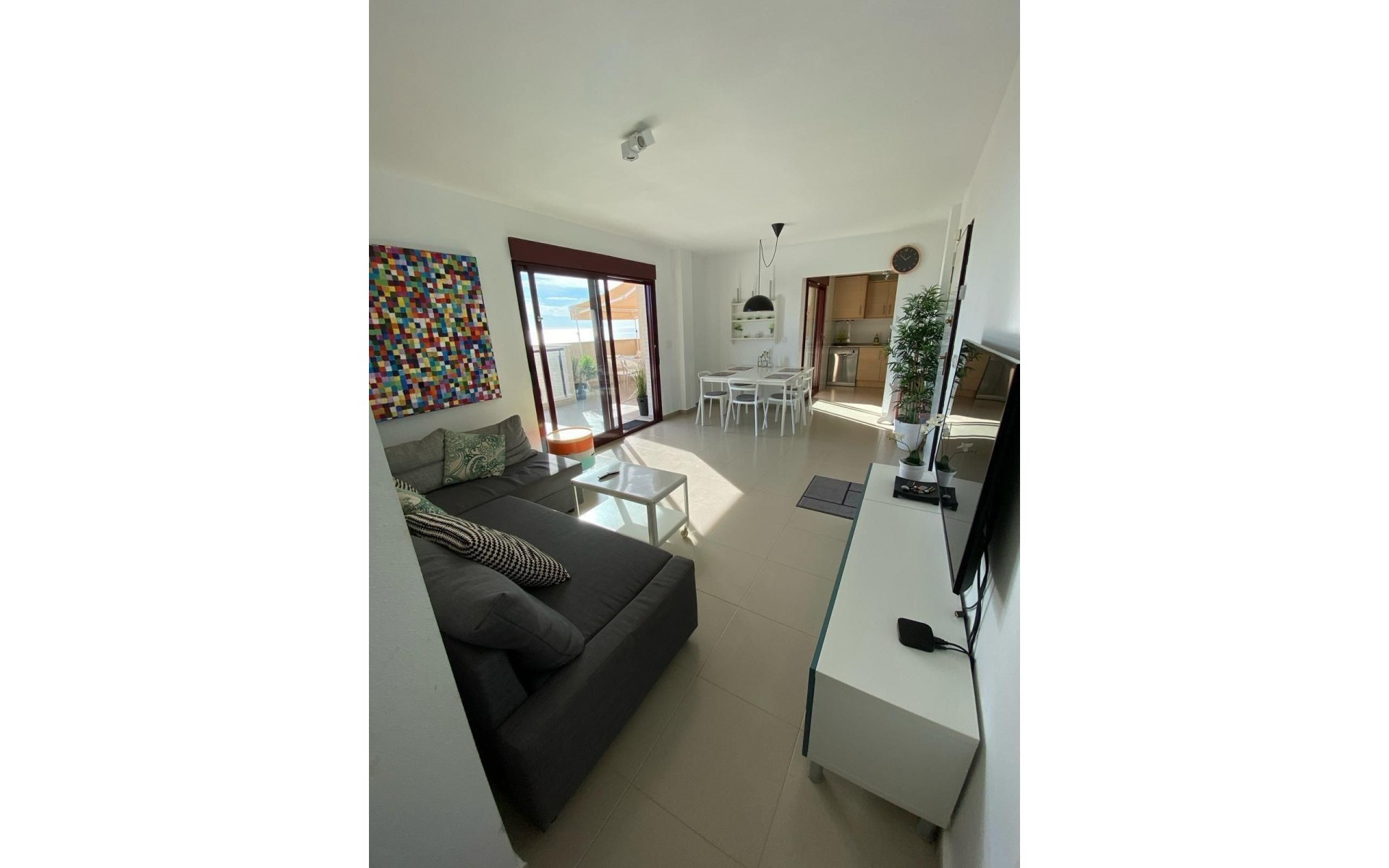 Perched at the very top of the sought-after Mojon Hills resort in Isla Plana, this exceptional two-bedroom apartment enjoys a truly commanding position with uninterrupted panoramic views across Isla Plana and the Costa Cálida coastline. Elevated, open, and bathed in natural light, the outlook alone sets this property apart. Built in 2010, the apartment offers a spacious and well-designed layout comprising two generous bedrooms and a modern family bathroom. It is sold fully furnished and equipped, with quality appliances throughout, allowing for immediate use either as a private residence or an income-generating investment. Hot and cold air conditioning ensures year-round comfort, while high-speed internet makes the property equally suitable for longer stays or remote working. Residents benefit from access to a well-maintained communal swimming pool and landscaped communal areas, all supported by very low community fees of just €50 per month. The property also includes an allocated parking space within the community, with additional ample parking available outside for guests. The elevated position not only guarantees privacy and views, but also makes this apartment highly attractive for holiday rentals. The property has a proven rental history, achieving nightly rates from approximately €100 in low season up to €250 during peak summer months, offering excellent potential returns. Whether you are seeking a lock-up-and-leave holiday home, a permanent residence with views, or a ready-made rental business, this apartment truly ticks every box. Opportunities in this prime position are limited. Contact us today to arrange a viewing and experience the views, space, and potential of this outstanding Mojon Hills apartment for yourself.