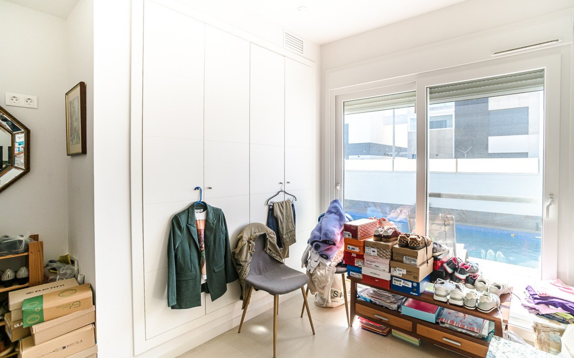 Let yourself be seduced by the charm of this luxury villa in Pilar de la Horadada , where comfort, style, and an excellent location come together. As soon as you visit this property, you immediately feel the relaxed Mediterranean atmosphere – a place where all you need to bring is your suitcases. On the ground floor , there is a spacious and bright living area with an open, fully equipped kitchen that flows seamlessly into the cozy living and dining room. Additionally, you will find 1 bedroom and 1 bathroom here, further enhancing daily comfort. The first floor accommodates two spacious double bedrooms, one of which is a master with an en-suite. From these rooms, you have access to a large terrace , ideal for enjoying the sun all day long. As a finishing touch, there is also a solarium equipped with an outdoor kitchen – the perfect spot for long evenings with family and friends. Outside, too, this villa is fully equipped to enjoy the Mediterranean climate. The beautiful garden features a cozy chill-out zone and a private swimming pool with a Jacuzzi , where you can relax in complete privacy. Additionally, an extra covered area has been created that can serve perfectly as a guest house, hobby room, or extra lounge spot . Furthermore, there is a practical storage room behind the kitchen, ideal for extra storage. The home is finished with high-quality materials and excellent features , including built-in wardrobes, air conditioning, underfloor heating, aluminium windows with Climalit glazing, wooden interior doors, and stylish stoneware floors . Moreover, the location is particularly convenient: just 50 meters from Mercadona and about 2 kilometers from the beach , putting all amenities and the coast within easy reach. This villa is a unique opportunity for those who want to enjoy luxury, comfort, and the Mediterranean life on the Costa Blanca. Interested in this beautiful villa? Contact us today for more information or schedule a viewing. Perhaps this will soon be your new home under the Spanish sun.
