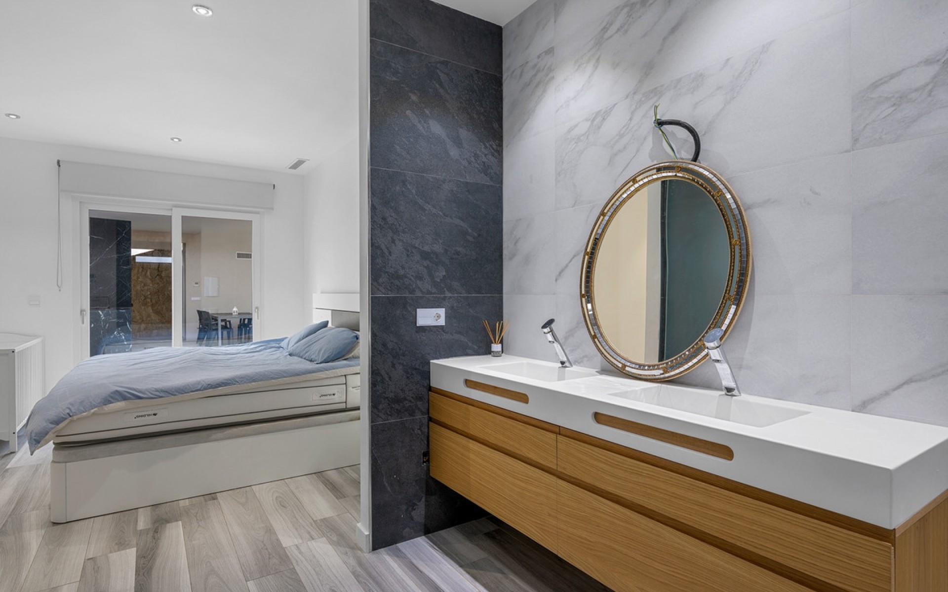 SPACIOUS MODERN VILLA WITH PRIVATE POOL IN ALGORFA, ALICANTE As you enter through the main gate, you are welcomed by a spacious driveway offering ample parking for multiple vehicles and plenty of room for outdoor furniture or decorative features. The exterior is enhanced by elegant ambient lighting, contributing to the modern and inviting atmosphere of the property. A garage and large under-house space provide additional secure storage or parking options. To the side of the property, you'll find a stylish outdoor kitchen area complete with a sink, cooking space, and a convenient outdoor toilet — perfect for entertaining. This area seamlessly connects to the pool terrace, where you can enjoy spectacular open views. The pool area offers generous space for sun loungers or outdoor seating, ideal for relaxation while overlooking the lower levels of the property. At the front entrance, a solid pivot door makes a bold architectural statement. Stepping inside, you are greeted by a bright and open living area featuring tall ceilings, modern spotlighting, and two sliding glass doors — one opening to the pool terrace and the other leading to the outdoor kitchen area, allowing abundant natural light and smooth indoor-outdoor flow. Adjoining the living area is a high-spec kitchen, fully equipped with premium Bosch appliances, including a built-in oven, microwave, and dishwasher. The contemporary kitchen island includes a water filtration system, ice cooler, induction hob with integrated air extractor, pop-up charging ports, and a wine fridge. The thoughtful design emphasizes both functionality and style while maximizing natural light through two additional sliding doors that open directly to the pool area. Adjacent to the kitchen, there is a storage room fitted with a top-of-the-line security camera system, and a utility room with direct access to the rear of the property for added convenience. A guest bathroom is located just off the main living space. Continuing down the hallway, sensor-activated spotlights lead you to two well-proportioned bedrooms, including a master suite featuring a walk-in wardrobe and a modern en-suite bathroom. Key Features • Spacious driveway with ample parking for multiple vehicles• Outdoor kitchen • Swimming pool with spectacular open views• Under-build storage and garage for additional secure parking• Bright and open living area with tall ceilings and modern spotlighting• double insulated windows • High-spec Bosch kitchen appliances including oven, microwave, and dishwasher• kitchen island with water filtration system, ice cooler, induction hob with integrated air extractor, pop-up charging ports.• Storage room fitted with top-of-the-line security camera system• Utility room with direct access to the rear of the property• Master suite with walk-in wardrobe and modern en-suite bathroom• Sensor-activated spotlights throughout the hallway Location Situated in Algorfa, Alicante, this villa enjoys a private and tranquil setting within a secure estate. It is just a short drive from the sandy beaches and a selection of local bars, restaurants, and shops, offering the perfect balance of seclusion and convenience for a Mediterranean lifestyle. Property video available – send us a message and we'll forward it to you straight away. Contact us today to arrange your private in-person or virtual viewing. Properties of this calibre and exclusivity are rarely available for long — early enquiry is strongly advised.